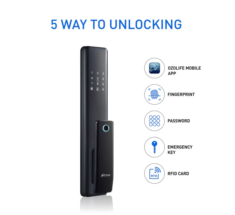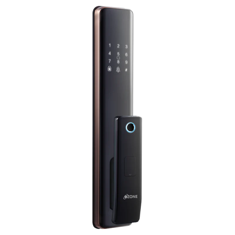 Ozone Morphy Nxt Plus Series Biometric Door Lock with Wifi. Available in Black, Rose Gold and Antique Copper variants. Biometric, Card & Password based entry options. Works on AAA size batteries ( batteries are not included ).
